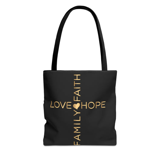 Love Hope Faith Family Cross Tote Bag (AOP)